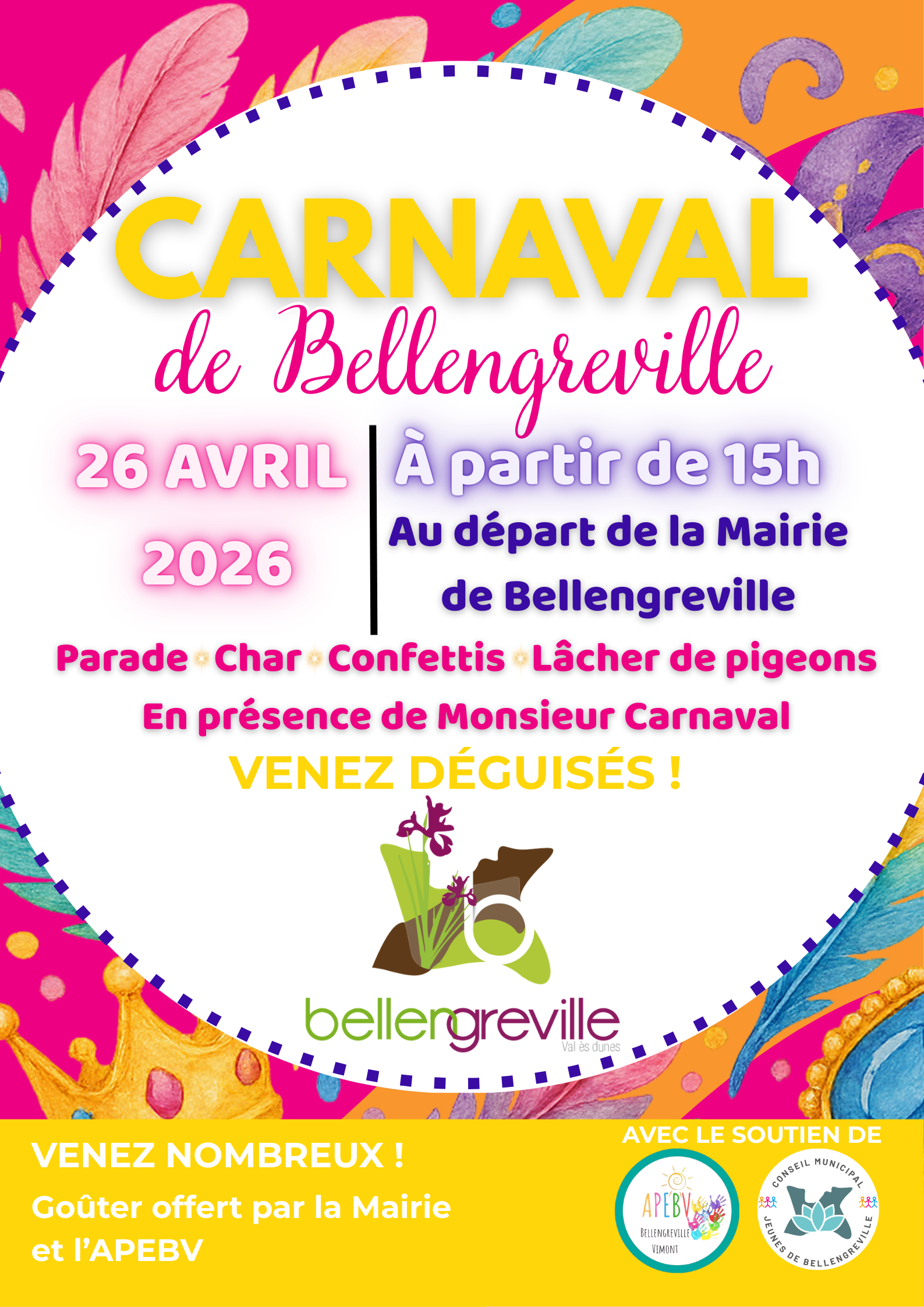 La mairie de Bellengreville vous donne rendez-vous le dimanche 26 avril 2026 à partir de 15h pour célébrer le Carnaval !