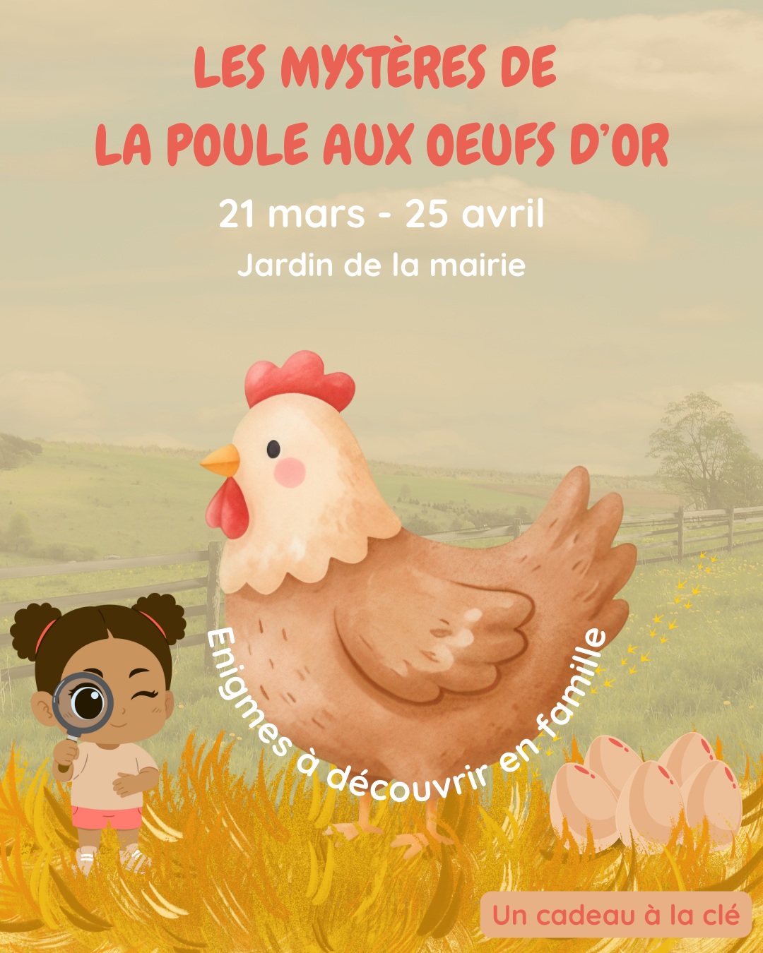 Du 21 mars au 25 avril, venez découvrir l’univers magique de La Poule aux Œufs d’Or dans le jardin de la mairie.